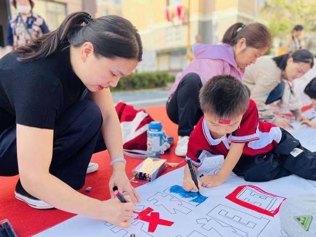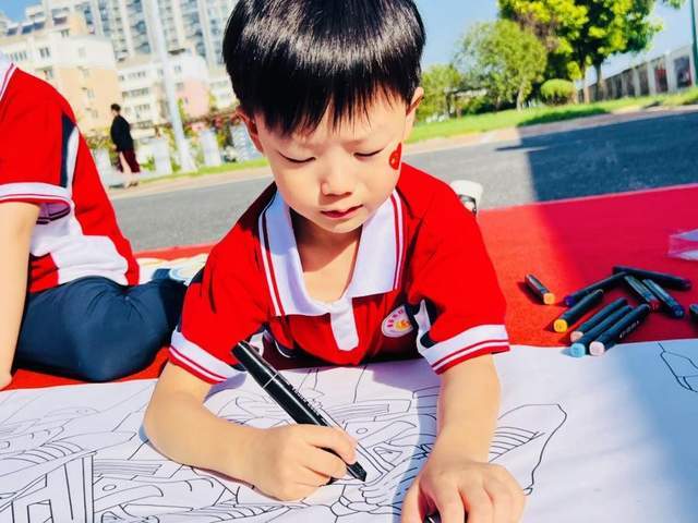 “百米长卷迎国庆,我为祖国添色彩”——大班萌娃走进马庄社区,和爸爸妈妈一起在百米画卷上,为祖国送上浓墨重彩的祝福。亲子同欢,共庆祖国华诞。